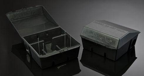 Heavy-duty TOMCAT Rat Bait Stations are made of injection-molded plastic to withstand the toughest baiting situations indoors and out. This tamper-resistant bait station features a durable “living hinge” that lets technicians open and close the station over 100,000 times without fracturing.
