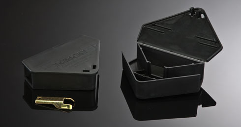 Compact TOMCAT RTU fits in tight baiting places under pallets, in cupboards or behind appliances. It is made of heavy-duty, injection-molded plastic to withstand tough baiting situations.
